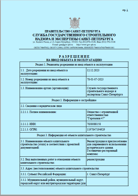 Разрешение на ввод в эксплуатацию
